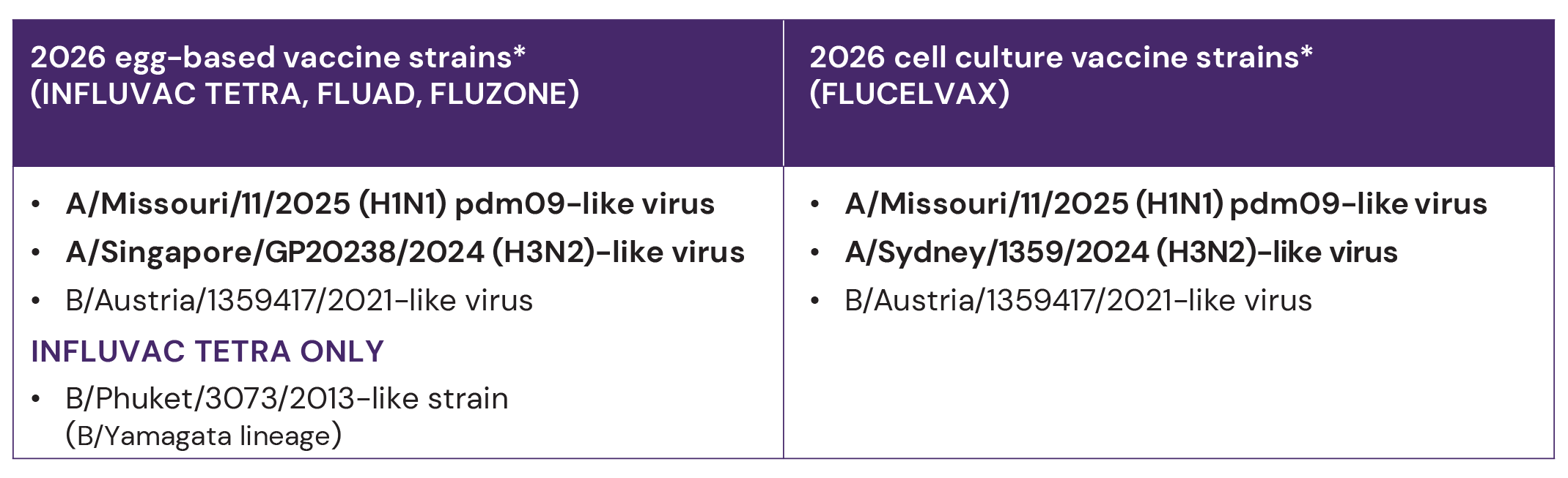 In 2025, the Southern Hemisphere egg-based and cell culture vaccines contain different strains, as recommended by the WHO.